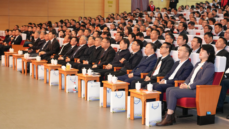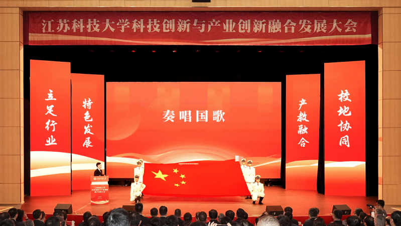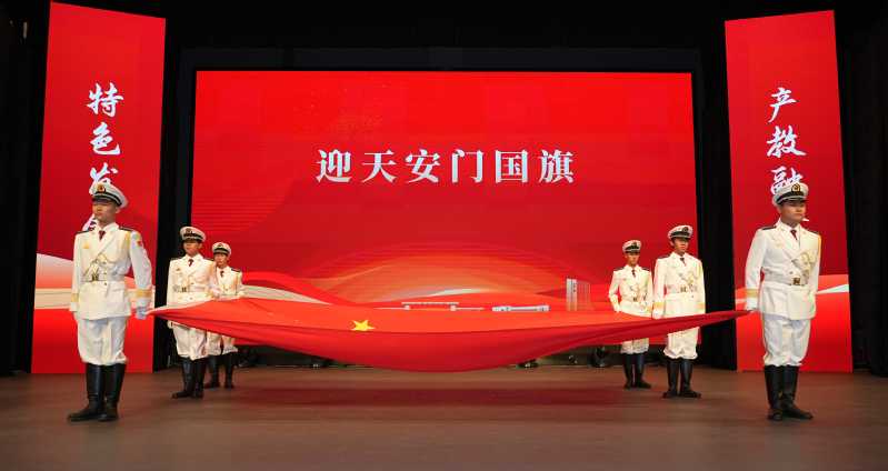 大会在庄严的国歌声中开幕。与会人员共同迎接了一面特殊的国旗——2023年10月26日在天安门广场升起的国旗,其升旗日恰逢学校办学90周年校庆日,意义特殊而重大,承载着对新时代江科大人的殷切嘱托。本次大会彰显了学校面向产业前沿、服务国家战略的坚定决心。
