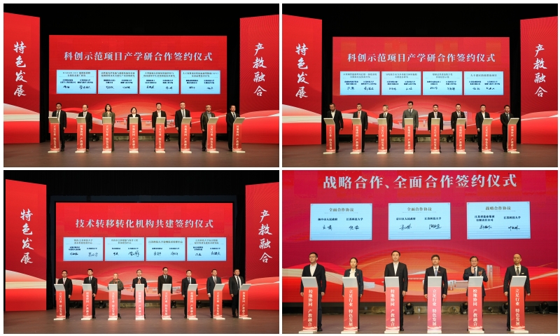 大会还举行了“中国-赞比亚蚕桑科技合作中心”授牌仪式和“船舶检验实训和技术交流中心”成立仪式,展现了学校开放合作的广度与深度。同时,学校与江苏省盐业集团、镇江市京口区人民政府、扬中市人民政府等签订校企、校地战略合作协议,与南京、无锡、泰州等地相关部门签订技术转移转化机构,与相关企业等签订一批科创示范产学研项目合作协议。