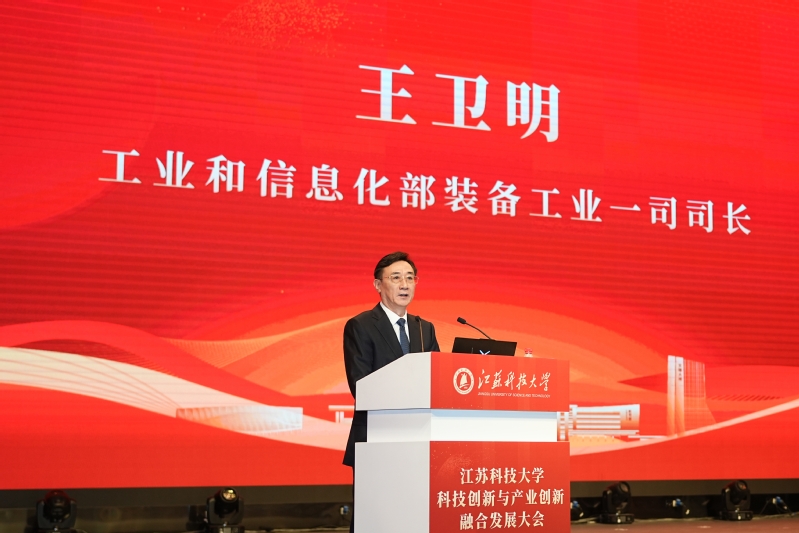 工业和信息化部装备工业一司司长王卫明在致辞中指出,江科大始终聚焦自身学科特色和科研优势,持续强化原始创新,充分发挥创新平台效能,有力推进科技成果转移转化,促进科技创新和产业创新深度融合。希望学校能够进一步发挥基础研究扎实、学科交叉融合的优势,强化高水平科技成果供给能力,打通从基础研究、应用研究到成果转化与产业孵化的全链条,培育具有学校特色的成果转化模式。要优化高端装备、人工智能、智能制造等领域的学科建设,创新产教融合人才培养模式,积极参与智能制造、工业母机等领域的国家科技重大项目,在服务国家重大战略中发挥更大的作用。