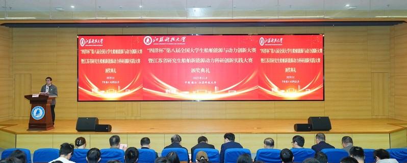 16日上午,大赛在图书馆105报告厅举行颁奖典礼。中国造船工程学会副理事长王俊利,江苏省工程热物理学会理事长施卫东,江苏省科学技术协会学会部部长岳智顺,江苏省造船工程学会理事长方建华,江苏省工学1类研究生教育指导委员会秘书长沈星,江苏科技大学党委常委、副校长胡爱祥,江苏省内燃机学会秘书长贾和坤,四洋柴油机制造有限公司总经理刘婧婧,以及学校学生处、团委等职能部门领导出席典礼。颁奖典礼由江苏科技大学能源与动力学院院长陈代芬主持。